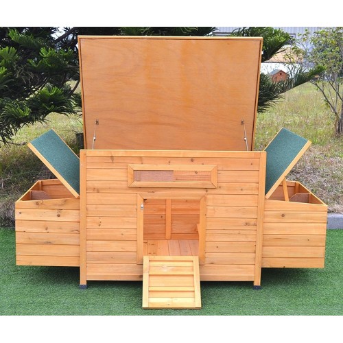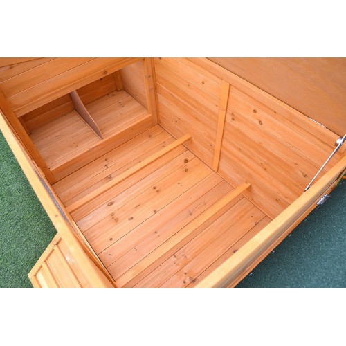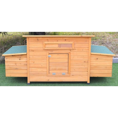 With large living house & internal nesting boxes, this chicken house is constructed by twin wall insulated plastic panels with white wooden frame. All joints are mortise and tenon. 2 x access doors for easily catch your pets.