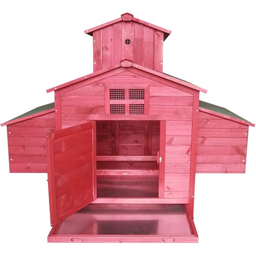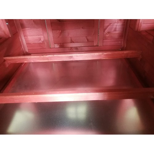 This chicken house with ramp & large living house & 6 nesting boxes. It is constructed by high quality solid Fir wood. All timber are T&G plained to aviod splintering. All joints are mortise and tenon, 2 x access doors for easily catch your pets. Come model come with a rear zinc pull out tray for easy cleaning.