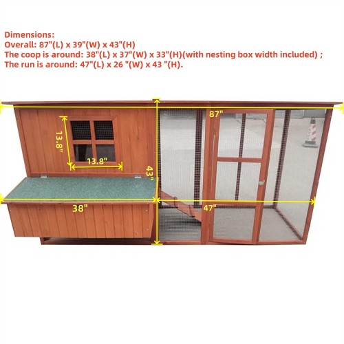 Overall (with nesting box width included): 87"(L) x 39"(W) x 43"(H)
